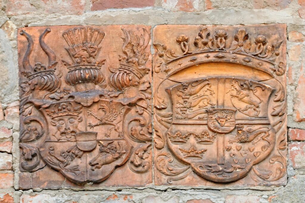 Dargun coat of arms stones at the Castle brewery Germany. Image shot 07/2016. Exact date unknown.